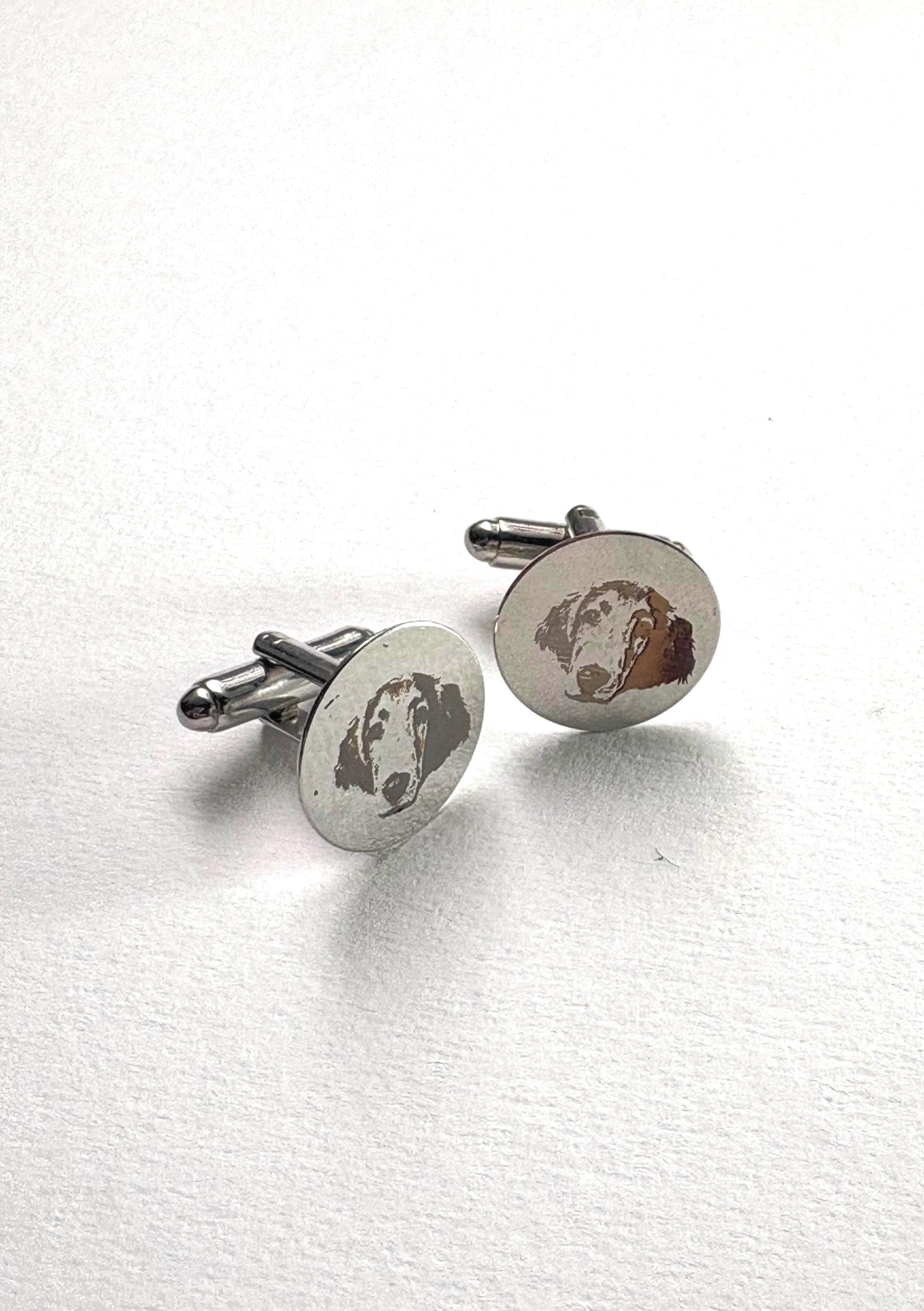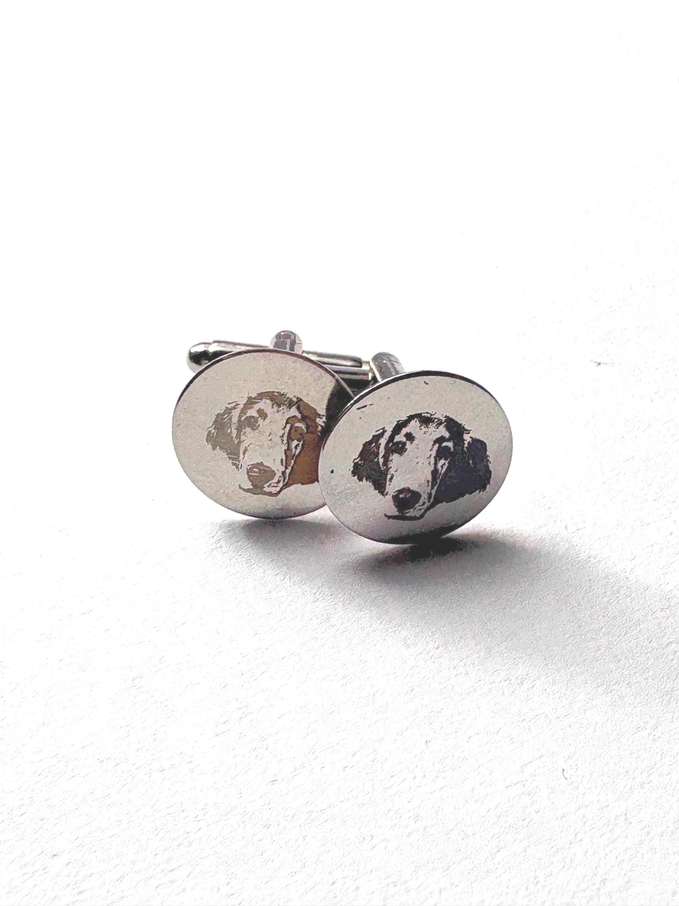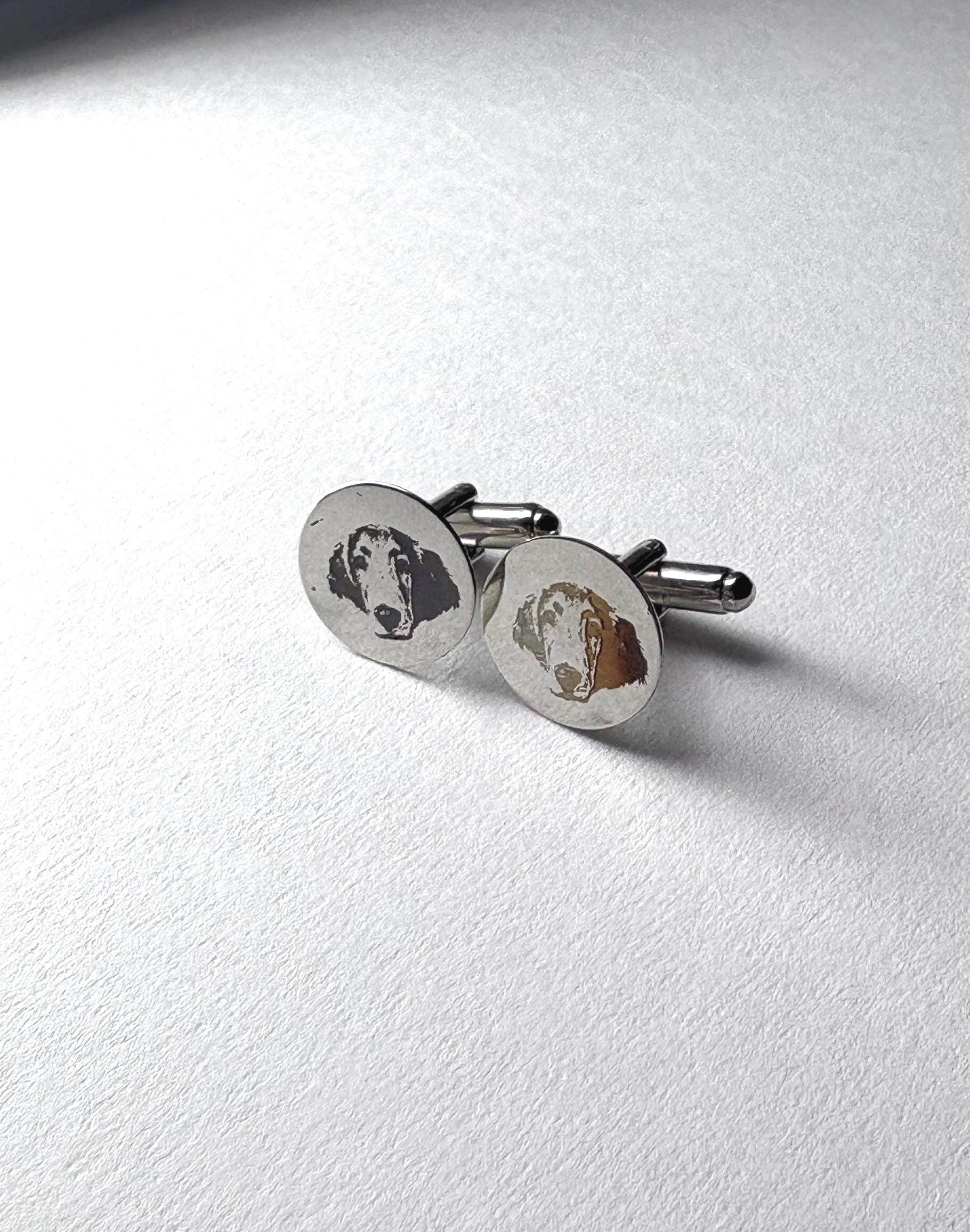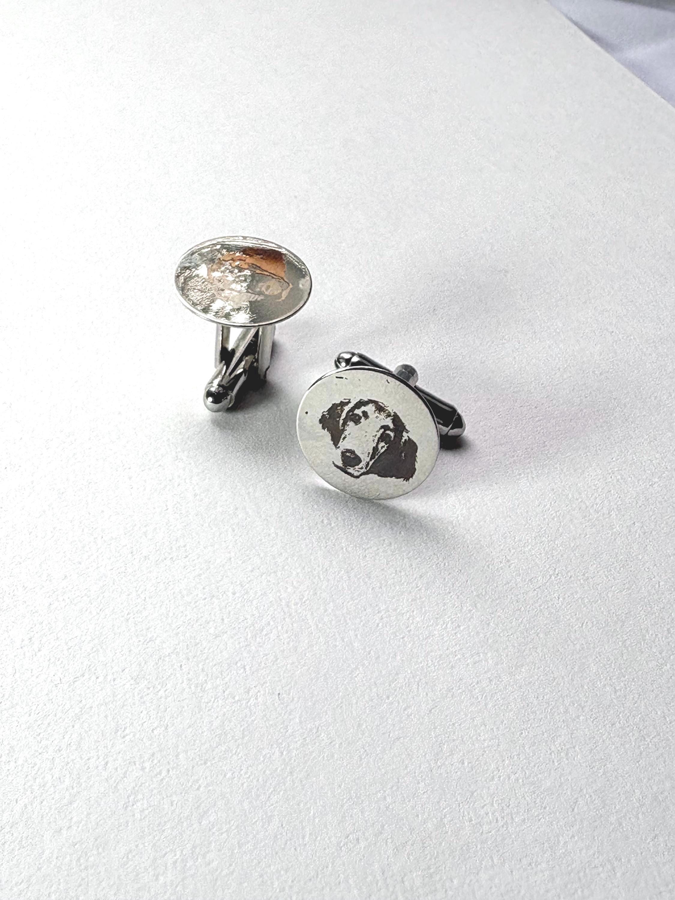 Personalized Engraved Dog Cufflinks – Custom Pet Portrait Cufflinks – Memorial Gift – Wedding / Groom Gift – Stainless Steel Celebrate your best friend in a subtle, elegant way with these custom engraved cufflinks. Each pair is carefully laser engraved with your dog’s portrait, creating a timeless keepsake that is both meaningful and wearable. Whether you're honoring a beloved companion, gifting a dog lover, or adding a personal touch to wedding attire, these cufflinks make a truly unforgettable piece. ✦ Product Details • Material: High-quality stainless steel • Finish: Polished silver tone • Engraving: Precision laser engraved (permanent, will not fade) • Shape: Classic round face • Includes: One pair of cufflinks ✦ Perfect For • Dog lovers & pet parents • Memorial / remembrance gifts • Wedding & groom gifts • Anniversary & birthday gifts • Everyday sentimental wear ✦ How to Order Send your pet photo via Etsy message after purchase High-contrast, clear photos work best Your design will be engraved exactly from your image