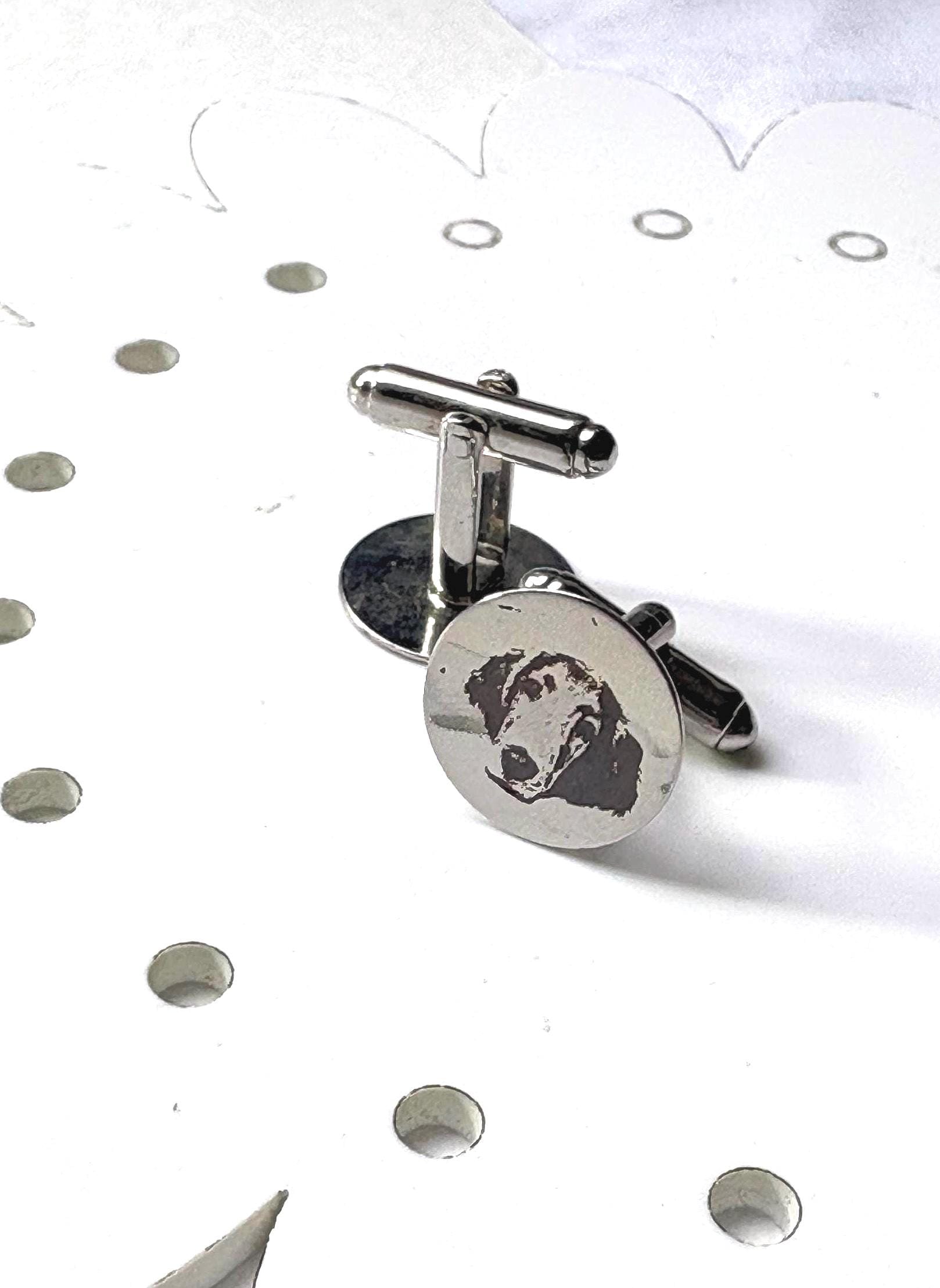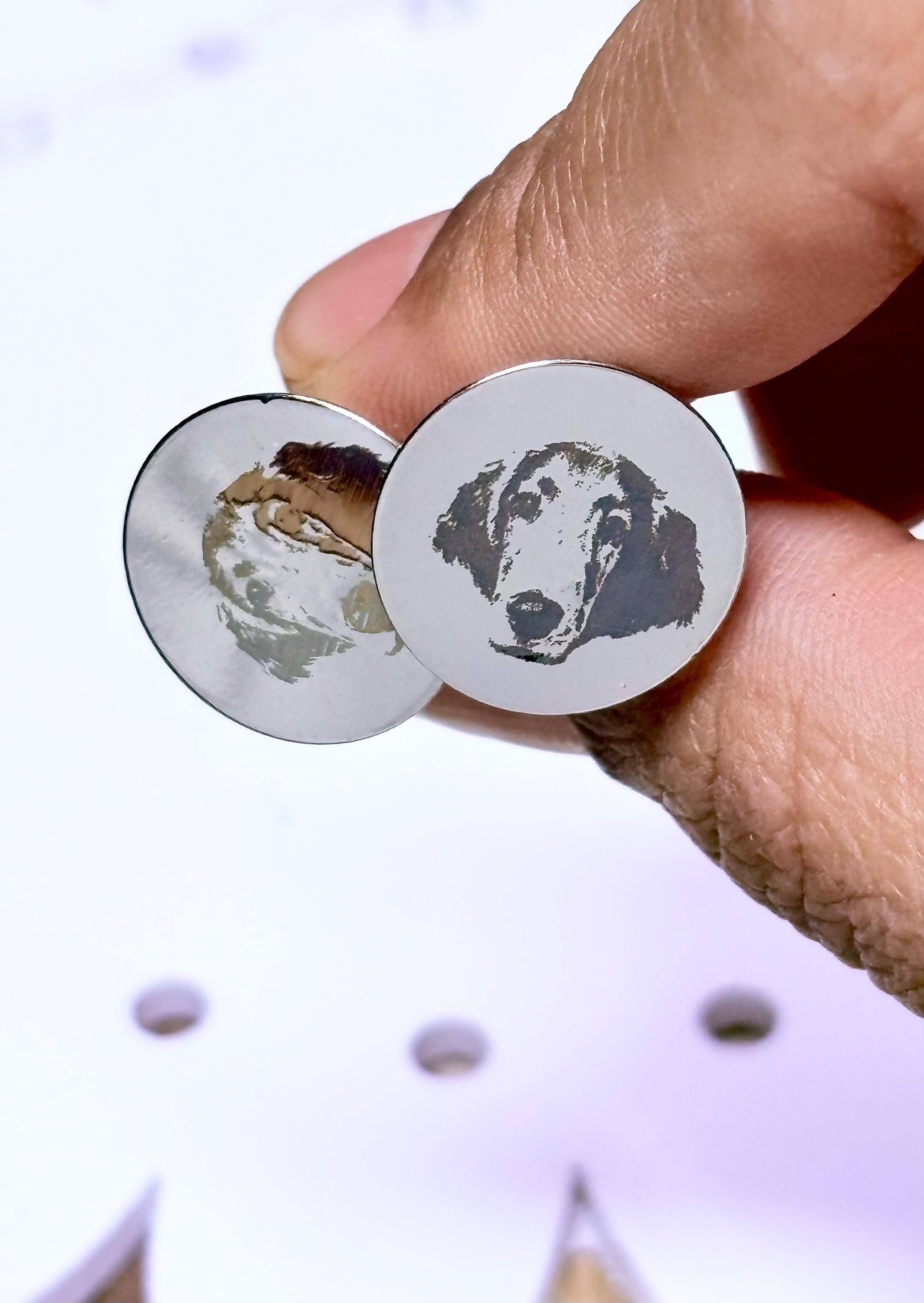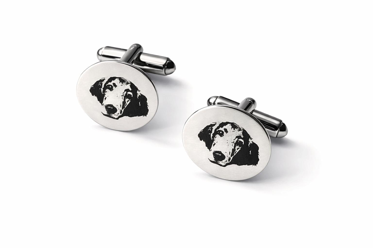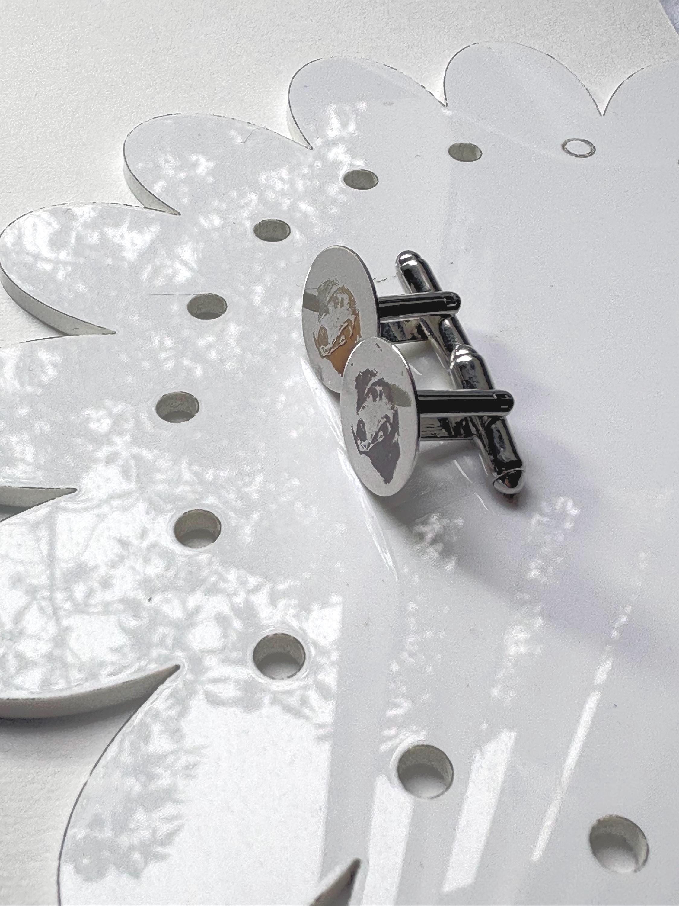 Personalized Engraved Dog Cufflinks – Custom Pet Portrait Cufflinks – Memorial Gift – Wedding / Groom Gift – Stainless Steel Celebrate your best friend in a subtle, elegant way with these custom engraved cufflinks. Each pair is carefully laser engraved with your dog’s portrait, creating a timeless keepsake that is both meaningful and wearable. Whether you're honoring a beloved companion, gifting a dog lover, or adding a personal touch to wedding attire, these cufflinks make a truly unforgettable piece. ✦ Product Details • Material: High-quality stainless steel • Finish: Polished silver tone • Engraving: Precision laser engraved (permanent, will not fade) • Shape: Classic round face • Includes: One pair of cufflinks ✦ Perfect For • Dog lovers & pet parents • Memorial / remembrance gifts • Wedding & groom gifts • Anniversary & birthday gifts • Everyday sentimental wear ✦ How to Order Send your pet photo via Etsy message after purchase High-contrast, clear photos work best Your design will be engraved exactly from your image